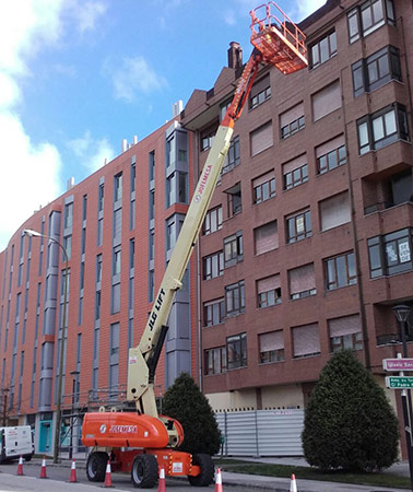 La calidad y resistencia de nuestras plataformas elevadoras telescópicas resultan perfectas para la construcción, la albañilería y ejecución de obras de mediana o gran envergadura, tales como la rehabilitación de fachadas, estructuras metálicas, puentes, etc.