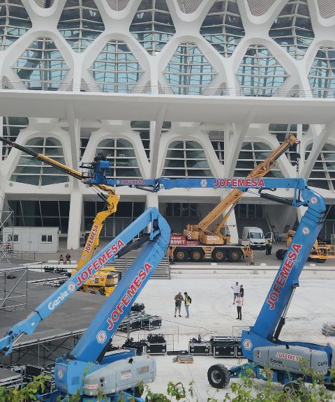 Orgullosos otro año más en JOFEMESA de seguir contando con los mejores Profesionales de la INDUSTRIA MUSICAL como CLIENTES EXCLUSIVOS. En CIUDAD DE LAS ARTES Y LAS CIENCIAS ¡VALENCIA MEJOR CIUDAD DEL MUNDO! JOFEMESA: Alquiler de Plataformas Elevadoras para la Industria Musical En JOFEMESA, nos enorgullece anunciar que, un año más,